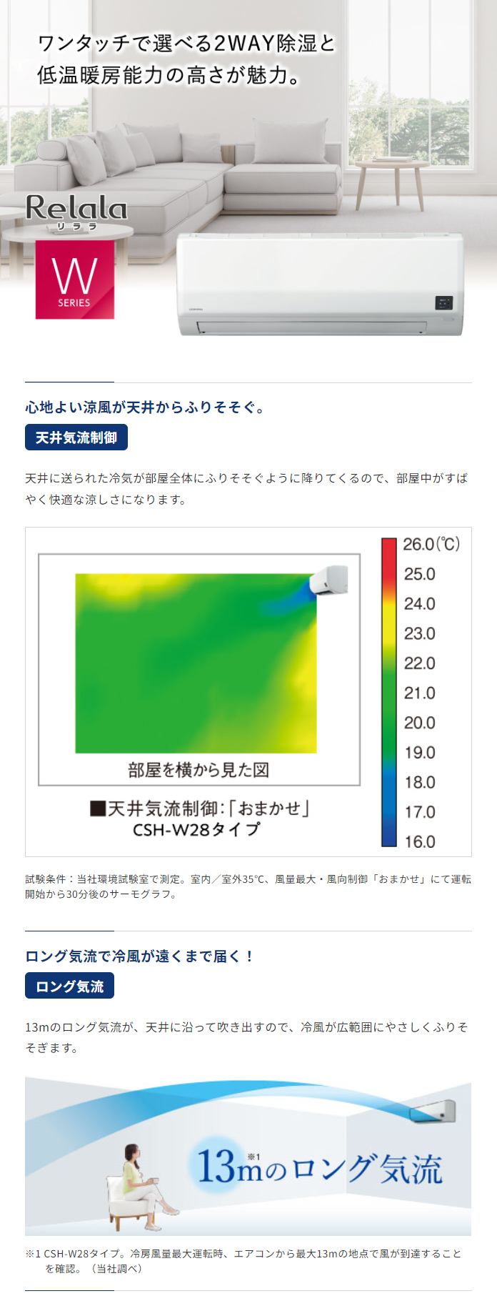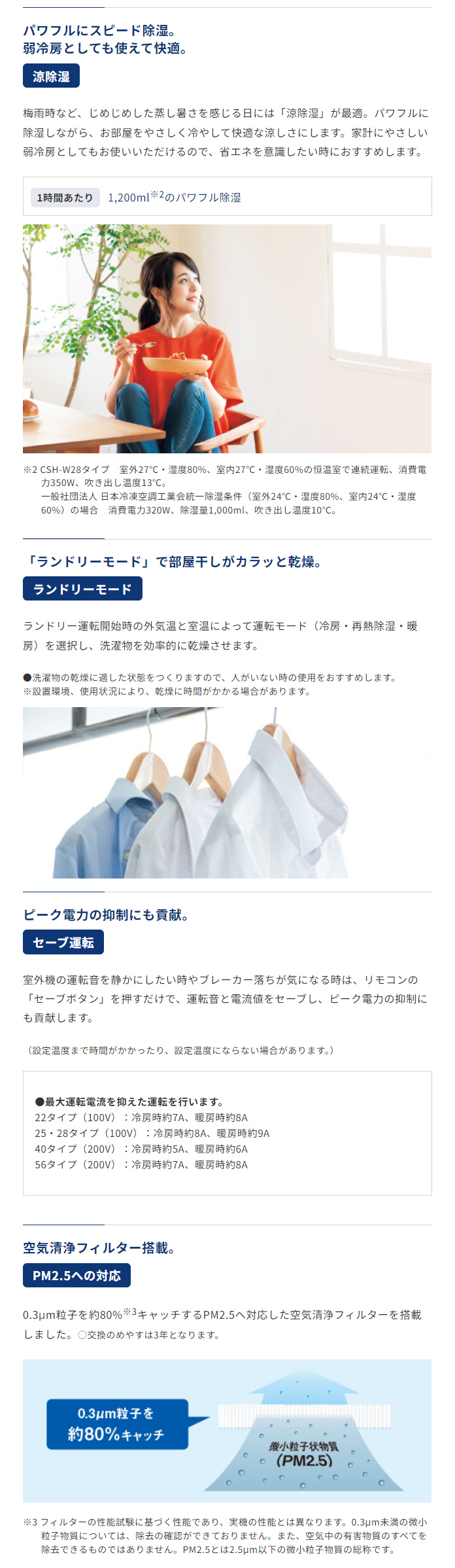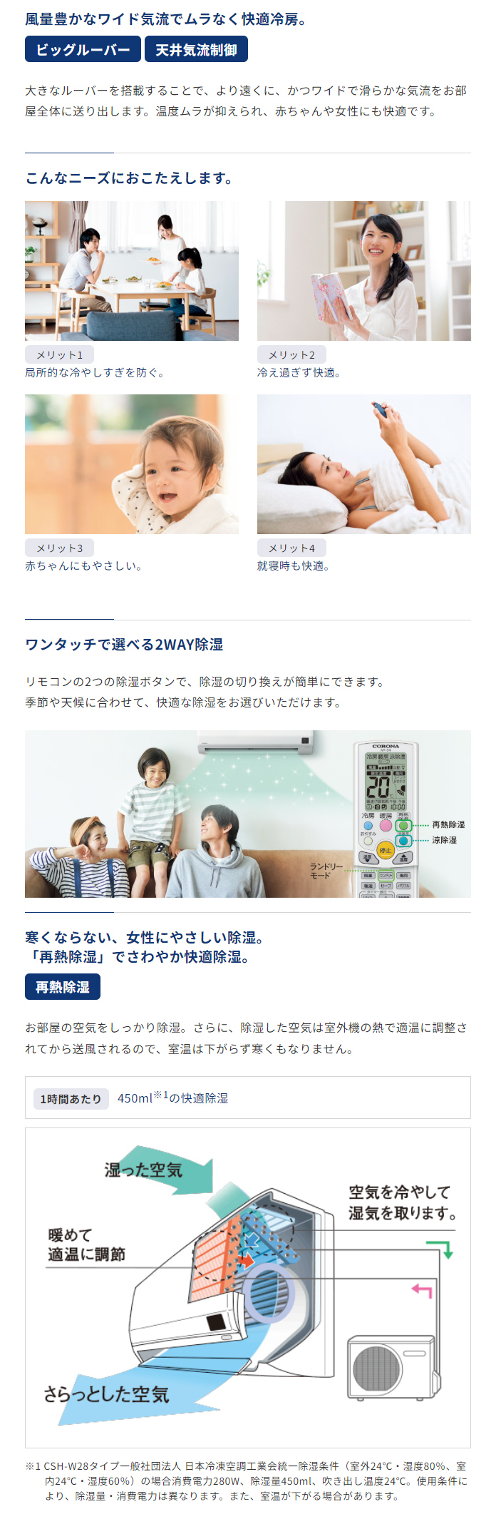 季節や天候、室温に応じて、「再熱除湿」と「涼除湿」がワンタッチで選べます。