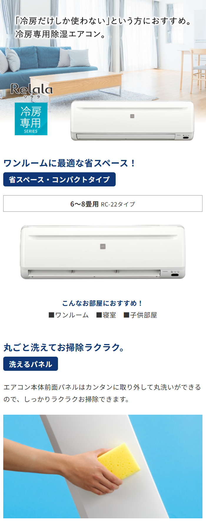 エアコン 6畳用 コロナ 2.0kW~2.2kW Relala リララ 冷房専用シリーズ 2026年モデル RC-2226R-W-SET ホワイト