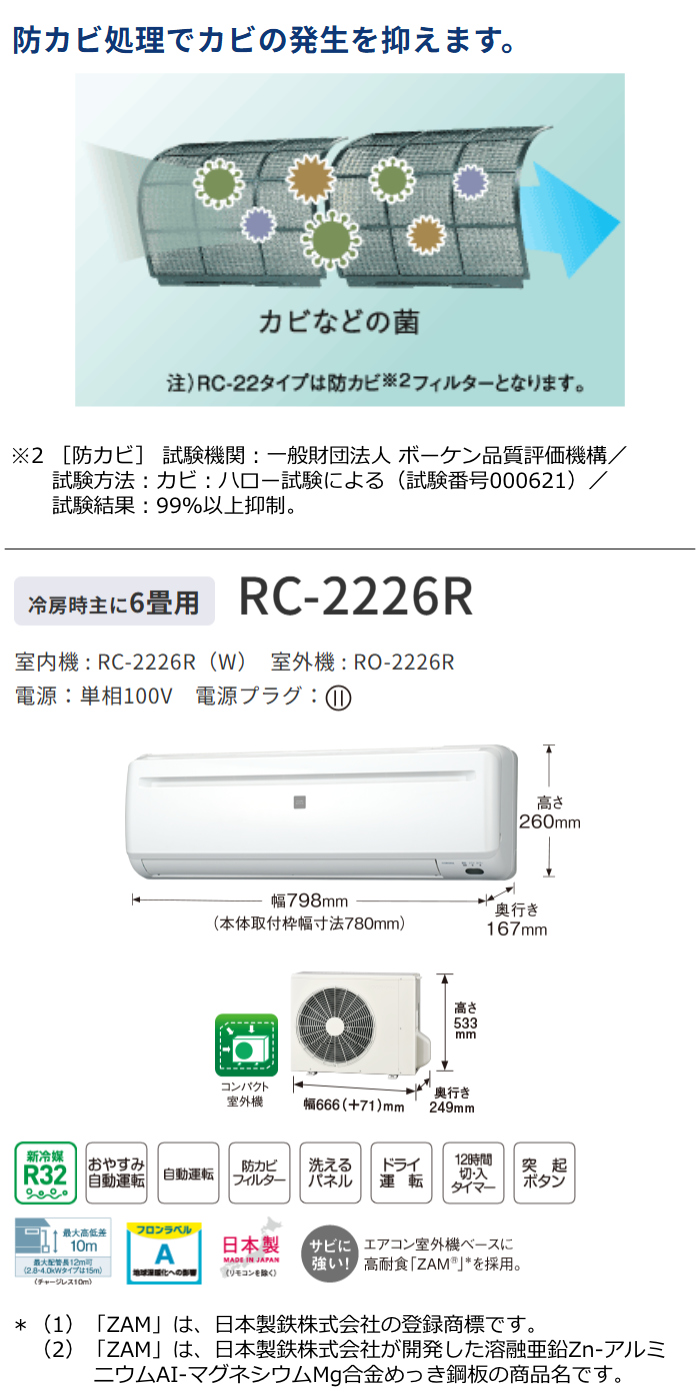 ■室内機:RC-2226R-W/質量7.0kg