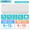 ■2025年モデル■室内機+室外機のセット冷房暖房兼用のスタンダードエアコン■夏でも冬でも快適冷房暖房兼用モデルハイセンスの住設モデルは、季節を問わず使える「冷房暖房兼用モデル」。暑い夏は涼しく、寒い冬は暖かく、365日快適な暮らしが続きます。■イヤなニオイを抑える内部クリーン機能と潤滑親水性コーティング冷房や除湿運転で内部に残った水分をしっかり乾燥。さらに、ニオイを吸着しにくい熱交換器コーティングを採用。カビやニオイの発生を抑えます。※自動運転・暖房・送風の運転停止時には内部クリーンは作動しません。■外気温50℃でも安心猛暑に強い室外機外気温50℃の環境下で、 実使用を考慮した性能試験を実施した室外機は猛暑でも使用が可能。猛暑の夏でも安定した運転を実現。※外気温とは室外機の吸い込み温度です。冷房することは確認済みです(能力を保証するものではありません)。使用環境・設置状況によって、冷房能力は低下することがあります。室外機周辺が高温になることがあります。所定の設置スペースを確保してください。■就寝時に便利なバックライト付きリモコン暗闇でも見やすいバックライト機能で、就寝前後も快適に操作が可能です。※ボタン操作時のバックライト点灯は約3秒となります。【主な仕様】■電源:単相100V・15A■電源プラグ:平行型■畳数の目安:冷房 8~12/暖房 8~10■能力(kW):冷房 2.8/暖房 3.6■室内機寸法:H282mm×W780mm×D236mm■室外機寸法:H530mm×W660(+92)mm×D275(+50)mm※( )内は突起物の寸法です。