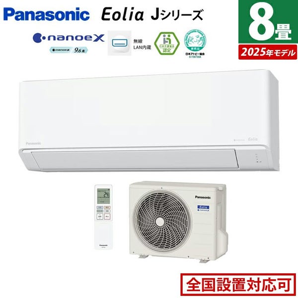 他の画像を見る ☆工事費込☆最大5年間延長保証申し込み可能! エアコン 8畳用 工事費込み パナソニック 2.5kW エオリア Jシリーズ 2025年モデル CS-255DJ-W-SET クリスタルホワイト CS-255DJ-W-ko1 当店特別価格 ¥ 89,800 税込 ☆工事費込☆最大5年間延長保証申し込み可能! 詳細を見る お気に入りに登録する