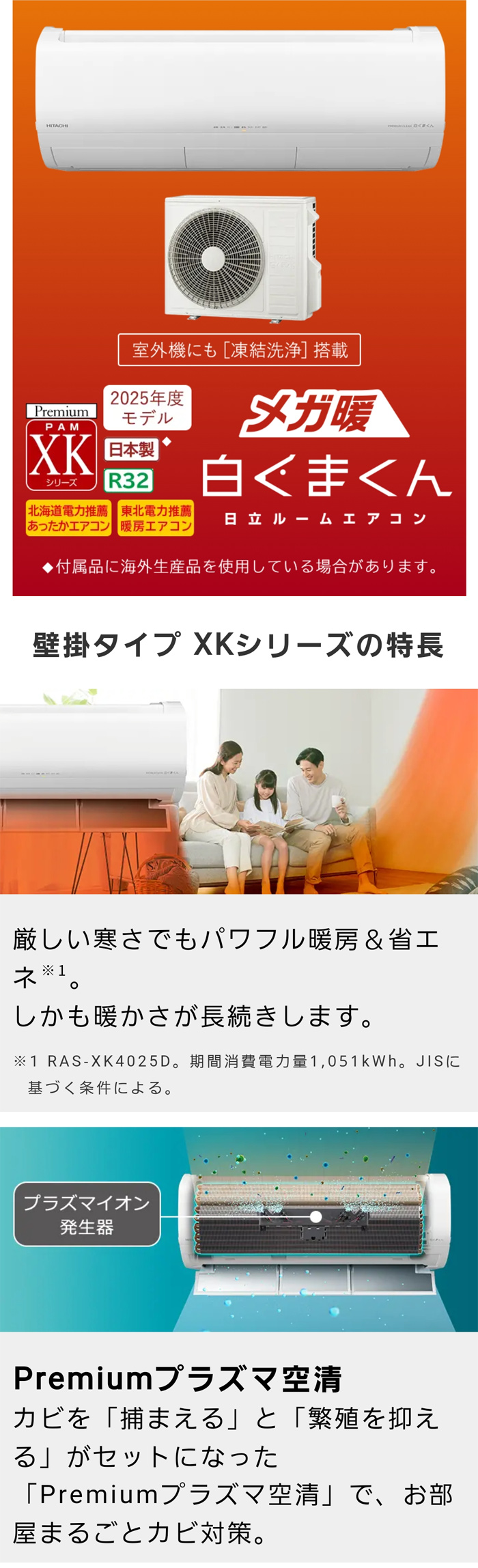 エアコン 18畳用 日立 5.6kW 200V 寒冷地エアコン メガ暖 白くまくん XKシリーズ 2025年モデル RAS-XK5625D-W-SET スターホワイト RAS-XK5625D-W+RAC-XK5625D