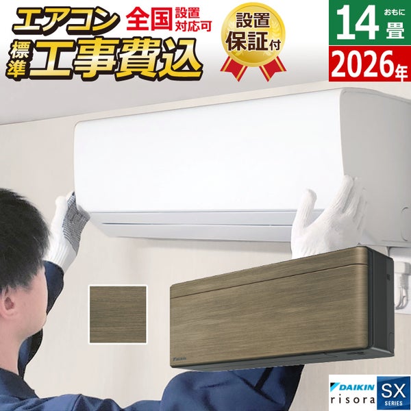 他の画像を見る ☆工事費込☆最大5年間延長保証申し込み可能! エアコン 14畳用 工事費込み 4.0kW 200V ダイキン リソラ SXシリーズ 2026年モデル S406ATSV-T-SET ノルディックブラウン 室外電源モデル S406ATSV-T-ko2 当店特別価格 ¥ 206,800 税込 ☆工事費込☆最大5年間延長保証申し込み可能! 詳細を見る お気に入りに登録する