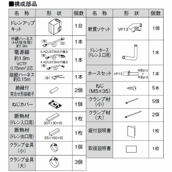 他の画像を見る 送料無料・代引き手数料無料 オーケー器材 ドレンアップキット 壁掛形用 K-KDU573NV 低揚程タイプ(1m) 200V 配管スペーサー付 当店特別価格 ¥ 44,980 税込 送料無料・代引き手数料無料 カートに入れる お気に入りに登録する