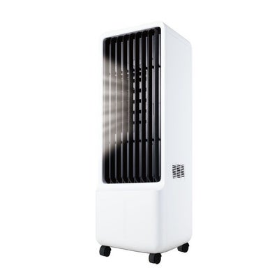 ■保冷剤も水もいらない冷風扇■周辺温度も表示される見やすいLEDパネル■弱・中・強に加えてパワフルモード搭載■上下左右ルーバーオートスイング■着脱可能タンク■電源:AC100V 50/60Hz■定格消費電力:135W■切タイマー:1~12時間(1時間単位)■モード:連続・リズム・おやすみ■風量調節:4段階(弱・中・強・パワフル)■重量:約7.1kg■本体サイズ:約(幅)27×(奥行)26.5×(高さ)79.5cm■タンク容量:約5L■電源コード長:約1.8m■首振り:上下左右自動■材質:ABS樹脂■付属品:リモコン(お試し用ボタン電池CR2025×1個)、キャスター×4個■生産国:中国