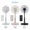 温度センサー搭載で静音、省エネのDCリビング扇風機●色:ベージュ●製品サイズ:W360×D350×H630/870(mm)●製品重量:2.8kg●風量切替:12段階●入切タイマー:8h●自動オフタイマー:8h●消費電力 50/60Hz:18W(最大)●自動首振角度:約85°●電源コード長:1.6m●機能:温度センサー
