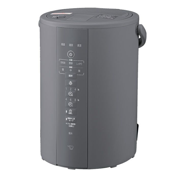 ◎就寝時にも便利な長時間加湿タイプ。フィルターがなくお手入れ簡単。■清潔な蒸気のスチーム式 沸とうさせたきれいな蒸気でお部屋を加湿します。吹き出し口からの蒸気温度は、独自の冷却構造で約65℃まで冷まします。※1※1 蒸気吹出口に触ったり、手や顔を近づけないでください■お手入れ簡単!「フィルター不要」&「広口容器」 フィルターがなく、さらにフッ素加工の広口容器なのでサッと拭くだけで簡単にお手入れできます。広口なので給水も湯捨てもラクラクです。しっかりお手入れする場合は、「クエン酸洗浄モード」が便利です。溶かしたクエン酸を入れて洗浄するだけでラクラクきれいに!■象印こだわりのトリプル安心設計「チャイルドロック」「ふた開閉ロック」「転倒湯もれ防止構造」 チャイルドロック…キーを3秒以上長押しするだけで全ての操作ができなくなります。※2 ふた開閉ロック…レバーでふたを常にロックしているので転倒しても簡単に開かないようになっています。 転倒湯もれ防止構造…本体をうっかり倒しても湯もれを最小限に抑えます。※3※4※2 安全のため「入/切」キーを押すと運転が停止します。※3 ふたがしっかりと閉まっていることをご確認ください。※4 本体を倒れたまま放置されますと、蒸気口から微量のお湯が流れ出ます。■容量(L):3.0■消費電力(W) 湯沸かし立ち上げ時:985■消費電力(W) 加湿時:305■定格加湿能力(mL/h):350■適用床面積の目安※1 木造和室:~6畳(10m2)■適用床面積の目安※1 プレハブ洋室:~10畳(16m2)■連続加湿時間(約h)強:8■連続加湿時間(約h)中:16■連続加湿時間(約h)弱(静音):32■外形寸法 幅×奥行×高さ(約cm):24×27.5×32.5■本体質量(約kg):2.7※1 適用床面積の目安は、日本電機工業会規格(JEM1426)に基づき、プレハブ住宅洋室の場合を最大適用床面積とし、木造和室の場合を最小適用床面積としたものです。ただし、壁・床の材質、部屋の構造、使用暖房器具等によって適用床面積は異なります