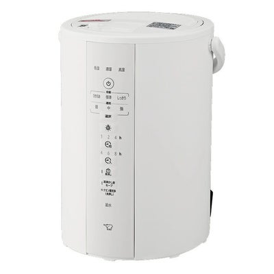 ◎就寝時にも便利な長時間加湿タイプ。フィルターがなくお手入れ簡単。■清潔な蒸気のスチーム式 沸とうさせたきれいな蒸気でお部屋を加湿します。吹き出し口からの蒸気温度は、独自の冷却構造で約65℃まで冷まします。※1※1 蒸気吹出口に触ったり、手や顔を近づけないでください■お手入れ簡単!「フィルター不要」&「広口容器」 フィルターがなく、さらにフッ素加工の広口容器なのでサッと拭くだけで簡単にお手入れできます。広口なので給水も湯捨てもラクラクです。しっかりお手入れする場合は、「クエン酸洗浄モード」が便利です。溶かしたクエン酸を入れて洗浄するだけでラクラクきれいに!■象印こだわりのトリプル安心設計「チャイルドロック」「ふた開閉ロック」「転倒湯もれ防止構造」 チャイルドロック…キーを3秒以上長押しするだけで全ての操作ができなくなります。※2 ふた開閉ロック…レバーでふたを常にロックしているので転倒しても簡単に開かないようになっています。 転倒湯もれ防止構造…本体をうっかり倒しても湯もれを最小限に抑えます。※3※4※2 安全のため「入/切」キーを押すと運転が停止します。※3 ふたがしっかりと閉まっていることをご確認ください。※4 本体を倒れたまま放置されますと、蒸気口から微量のお湯が流れ出ます。■容量(L):3.0■消費電力(W) 湯沸かし立ち上げ時:985■消費電力(W) 加湿時:305■定格加湿能力(mL/h):350■適用床面積の目安※1 木造和室:~6畳(10m2)■適用床面積の目安※1 プレハブ洋室:~10畳(16m2)■連続加湿時間(約h)強:8■連続加湿時間(約h)中:16■連続加湿時間(約h)弱(静音):32■外形寸法 幅×奥行×高さ(約cm):24×27.5×32.5■本体質量(約kg):2.7※1 適用床面積の目安は、日本電機工業会規格(JEM1426)に基づき、プレハブ住宅洋室の場合を最大適用床面積とし、木造和室の場合を最小適用床面積としたものです。ただし、壁・床の材質、部屋の構造、使用暖房器具等によって適用床面積は異なります