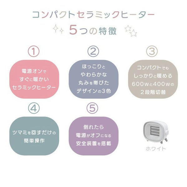 他の画像を見る 送料無料・代引き手数料無料 ユアサプライムス コンパクトセラミックヒーター YGT-S640F-W ホワイト 電気ファンヒーター 当店特別価格 ¥ 4,480 税込 送料無料・代引き手数料無料 カートに入れる お気に入りに登録する
