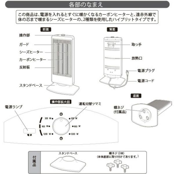 他の画像を見る 送料無料・代引き手数料無料 ユアサプライムス 電気暖房 三灯管シーズカーボンハイブリットヒーター YKT-SCS12E-K ブラック YUASA 当店特別価格 ¥ 10,380 税込 在庫切れ 送料無料・代引き手数料無料 詳細を見る お気に入りに登録する