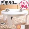■商品について:昔ながらのちゃぶ台がこたつになりました☆シンプルなデザイン。こたつもテーブルもこれ1台でOK♪使わないときは折畳んですき間へ収納。薄型石英管ヒーター(600W・手元コントローラー式)。便利な継ぎ脚付(高さ5cm)。サイズ(cm):径90x高さ39・約20kgカラー:ナチュラル・ブラウン・ホワイト材質:天板-天然木化粧繊維板(楢)完成品(11100196)
