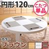 ■商品について:昔ながらのちゃぶ台がこたつになりました☆シンプルなデザイン。こたつも、テーブルもこれ1台でOK♪使わないときは折畳んで隙間へ収納。薄型石英管ヒーター(600W・手元コントローラー式)。便利な継ぎ脚付(高さ5cm)。サイズ(cm):径120x高さ39・約28.5kgカラー:ナチュラル・ブラウン・ホワイト材質:天板-天然木化粧繊維板(楢)完成品(11100199)