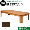 ■でっぱりの無いフラットヒーター■角の丸い優しい印象のラウンドデザイン■高さが調節できる継ぎ脚付き■畳んで収納できる折れ脚式■国産、高品質こたつ。職人による確かな仕上げ。高品質のこたつです。■冬以外はテーブルとしても使える。家族が集まる時期に重宝する大判のサイズ展開。■重量:約32kg■天板重量:約13kg■サイズ:幅180x奥行80x高さ40(35)cm ※カッコ内は継ぎ脚をつけない時の高さです。■天板厚:3.7cm■天板:天然木化粧繊維板(楢)■脚部:天然木(ラバーウッド)■塗装:ウレタン塗装■フラットヒーター(中間スイッチ)■ヒーター消費電力:300W■コート長さ:約2.8m