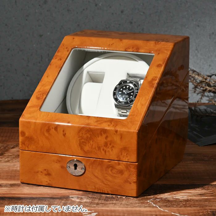 ■木製2連ワインディングマシーンは、静音性と優れた性能を兼ね備えた優雅なインテリアです。■その美しい木製外装は、高品質なピアノブランク仕上げで仕上げられ、上質な雰囲気を醸し出します。■透明な窓ガラスが備わっており、内部の腕時計が一目で確認できます。■このワインディングマシーンは、静音モーターによって時計を静かに巻き上げます。■時計のパフォーマンスや精度に影響を与えることなく、自動巻き機能を保持します。■また、独自のプログラム設定により、個別の巻き上げモードや回転方向を選択できます。■時計愛好家にとって、このワインディングマシーンは正確かつ効率的な巻き上げを提供し、愛着のある腕時計を常に最適な状態に保ちます。[ウォッチワインダー/時計&アクセサリー収納ケース]■腕時計巻き上げ本数:2本■腕時計収納本数:2本■サイズ:横18.5cm・奥行22cm・高20.7cm■カラー:木目調ライトブラウン(外装)・ホワイト(内装)■素材:MDF木製塗装■備考:AUTO-STOP機能/4段階設定プログラム搭載/アクセサリー(指輪・カフス)収納スペース