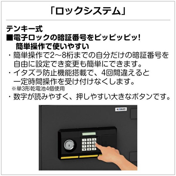 他の画像を見る 送料無料 エーコー 耐火金庫 スタンダードシリーズ テンキー式 BES-9PK ガーゴイルグレー Eiko 当店特別価格 ¥ 30,480 税込 送料無料 カートに入れる お気に入りに登録する