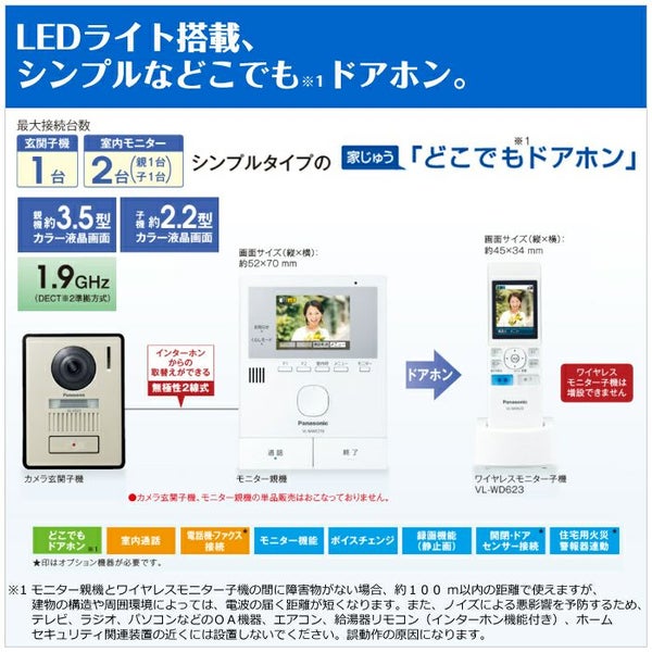 他の画像を見る 送料無料・代引き手数料無料 パナソニック テレビドアホン どこでもドアホン ワイヤレスモニター付き 電源コード式 VL-SWE210KLA 当店特別価格 ¥ 20,800 税込 送料無料・代引き手数料無料 カートに入れる お気に入りに登録する