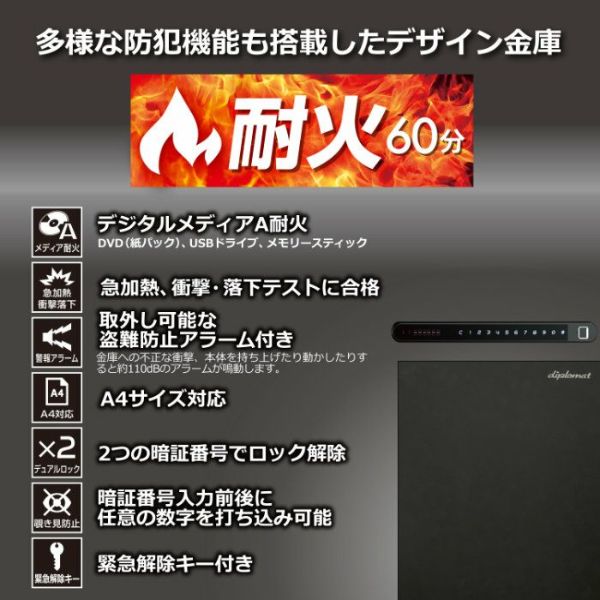 他の画像を見る 送料無料 ディプロマット OTFタッチパネル+指紋認証 耐火金庫 プレミアム金庫 BEYOND 90分耐火 容量64L BY700-TB チタニウムブラック 当店特別価格 ¥ 286,000 税込 送料無料 カートに入れる お気に入りに登録する