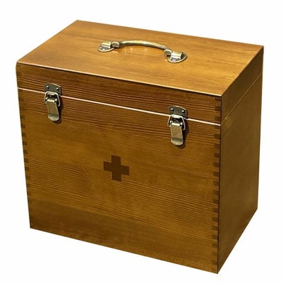 ■木に細かな凹凸をつけ、日本職人の高い組木技術をいかした木製救急箱大。■組木は見た目の美しさだけではなく、変形しにくい特性があり耐久性にも優れているため、末永くご使用いただくことが出来ます。■天然木ならではの素材感や味わい深いアンティーク調の金具など細部までこだわり、見える場所においてもお部屋の雰囲気を一段と上質に見せてくれます。■フタの内側にはハサミやピンセットなどを収納できる仕様になっており、取り外しができるトレイもついているので小物もすっきり収納できます。■収納部が深く、高さのあるボトルやパッケージも入り、丈夫な金具を使用して高いデザイン性と頑丈さを持った日本製救急箱です。■サイズ(外寸):W260×H244×D173mm■サイズ(内寸):W245×H192×D145mm■材質:天然木・合板・スチール■生産国:日本