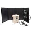 ◎これだけで安心!簡単ポータブル電源・ソーラーパネルセット災害や停電時・アウトドアで役立つ大容量充電池に、太陽光 充電ができる ソーラーパネル をセット●セット内容/ACアダプター、シガーソケットアダプター、ソーラーパネル、DCケーブル(変換プラグ付き)、3-in-1ケーブル、取扱説明書■ポータブル電源最大外形寸法(約)/幅119*奥110*高159 mm質量(約)/1.2 kg内蔵充電池/リチウムイオン充電池 111Wh定格入力/DC19V/1.5A ●定格出力/AC:AC100V 50Hz、DC:12-16.6V/10A、USB:5V/3A~20V/1.5Aインバーター出力容量/120W出力波形/修正正弦波入力端子/充電用端子×1出力端子/AC:3芯×1、2芯×1、USB:Type-A×2、DC×1充電時間(約)/AC:7時間、ソーラー:16時間材質/ABS樹脂■ソーラーパネル材質/パネル:単結晶シリコン、生地:防水ポリエステル最大出力/21W