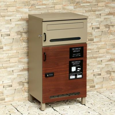 MOJYU 宅配ボックス付ポスト Sara サーラ PBX-073 ミルクティーベージュ/ブラウン木目