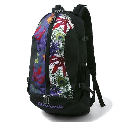 ■サイズ:W35×H57×D32cm■素材:ポリエステル■カラー展開:マルチ■孔雀の羽や色鮮やかな花を散りばめたトロピカルなパターンを用いたシリーズ。■バスケットプレイヤーのために開発されたバッグ。■ボール・シューズ・アパレルなど、バスケに必要な装備を全て収納可能。■ボール用の大容量ボトムポケット。シューズ用フロントポケット。■ペットボトルが収納できるメッシュサイドポケット。