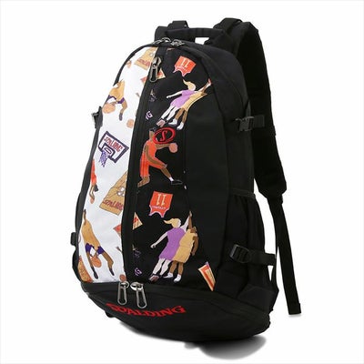 ●素材:ポリエステル●サイズ:W35×H57×D32cm●容量:32L●手書き風のイラストが新鮮なポップなパターンをデザインに採用。●バスケットプレイヤーのために開発されたバッグ。●ボール・シューズ・アパレルなど、バスケに必要な装備を全て収納可能。●ボール用の大容量ボトムポケット。●シューズ用フロントポケット。●ペットボトルが収納できるメッシュサイドポケット。