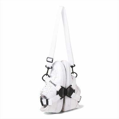 ●足の甲部分のベルトでサイズ調節が可能です。かかと部分からはしるテープで、肩掛け・斜め掛けなどして持ち運びが可能です。