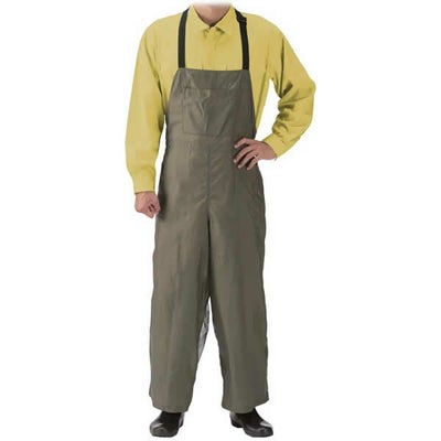 ■汚れやムレを気にせず、快適に作業ができる草刈り作業衣料。サロペットの前側は撥水加工を施した生地で刈った草の汁を防ぎ、後ろ側はメッシュ生地で通気性を考えた設計になっています。