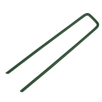 人工芝や防草シートを路盤と固定する際に使用するU字ピンです。頑丈で安定感のあるスチールを採用し、線径を通常のΦ3.0mmからΦ4.0mmにすることで、高強度に。さらに、緑色に塗装し、目立ちにくくしました。