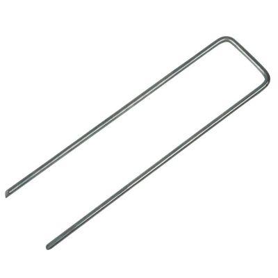 人工芝や防草シートを路盤と固定する際に使用するU字ピンです。頑丈で安定感のあるスチールを採用し、線径を通常のΦ3.0mmからΦ4.0mmにすることで、高強度に。さらに、亜鉛メッキ加工で、錆びにくくなりました。