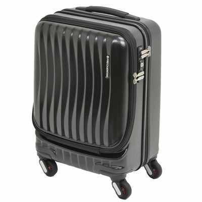 ○不用意な動きを防ぐストッパーを備えた前開きケース※ストッパー機構は、完全に動きを止める事を保証するものではございません。○簡単なワンプッシュ!揺れる電車やバスの中では、キャリーケースをしっかり持って固定しておかないと転がってしまうが、ストッパーでケースを固定する事により両手が自由になる。しかも、ワンプッシュで操作も簡単。○耳を疑う走行音、特許取得の優れた静粛性はトップレベル・約1/5以上の静粛性消耗タイヤを簡単交換 内輪と外輪が回る特許取得の特殊構造タイヤにより、耳障りな走行音を軽減。 ※dB 比較測定の最高値を体感数値化。・消耗タイヤを簡単交換 消耗タイヤをメーカーに修理に出す事無く、別売りタイヤで自分で簡単に交換可能。・振動を約70%削減高精度ベアリング 二重構造で上質なゴム質が路面からの振動を吸収し、走行の振動を軽減させる。 ※. 同構造タイヤによる垂直振動測定。・高精度ベアリング 世界品質のミネベアミツミ社製ベアリングを採用し、静かで滑らかな走行が可能。 ※NMB はミネベアミツミ株式会社の登録商標です。・耐久性に優れた樹脂ボディー ドイツBAYER社により開発された強化ポリカーボネート、マクロロンを採用。○外出時、ちょっと取出したいときに超便利立てたまま荷物が出せるフロントルームからメインルームへ「ちょっとメインルームの中の物を取出したい」、「でも、ここでケースを全開して取出すのは・・・。」という時、駅や空港、街中でケースを大きく開かなくてもケースを立てた状態のままフロントポケットを開く事ができる。さらに、フロントルーム内のファスナーを開くとメインの荷物を取出す事ができる便利な内装構造。○サイズ:W35 x H46 x D24cm○総外周:W36 x H53 x D24=113cm○国内線(100席以上)機内持込みサイズ○重量:約3.6kg○容量:約34L○PC収納:32x35cm