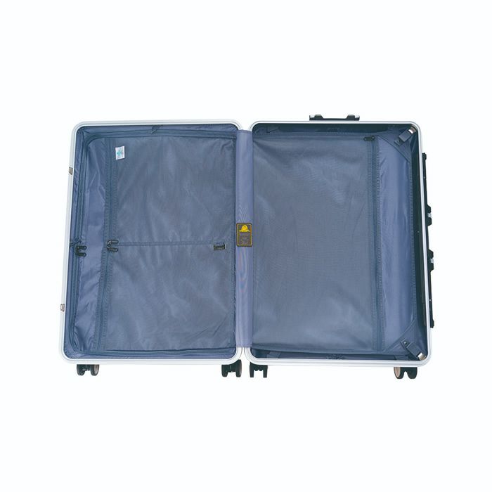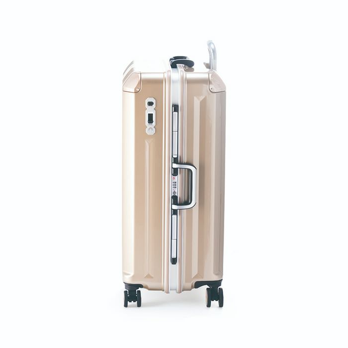 たっぷり入って軽い、が自慢の「デカかるEdge」のフレームタイプ。軽量だけでなく、強度を誇るボディ素材はポリカーボネイト100%。静音性に優れた新素材採用のLisof Silent Runを搭載。ダブルホイールキャスターが抜群の安定性と走行性を誇ります。揺れる電車や坂道で便利なストッパー機能を搭載、そのうえ、前輪だけが止まるので、トローリーハンドルを引いて本体を斜めに倒せばストッパーを解除することなく移動ができます。特殊コーティングされたポーカーボネイト製コーナパッドは、本体と同色でドレスアップ!!■ボディデザイン ボディ素材には、新幹線・航空機の窓や防弾ガラスにも採用されている高純度なポリカーボネイトを100%使用しています。■ホイールロックスイッチ 電車内・坂道などで便利なホイールロックスイッチ付きです。本体側面のスイッチで簡単にロック・解除が行えます。■50×60mm径ダブルホイールキャスター 静音性に優れた素材の『Lisof』ダブルホイールキャスター使用。前輪に50mm径・後輪に60mm径のキャスターの大小輪仕様のためストッパー機能仕様時の二輪走行もラクに移動が可能となりました。■特殊コーティングコーナーパッド 本体同色の100%ポリカーボネイト製のコーナーパッド。特殊コーティングを施すことで、キズや衝撃に強くなっています。■ボトムハンドル ボディ下部に取り付けられたボトムハンドルは、荷降ろしの際に便利です。■アイテムNo:ALI-070R-28■サイズ(cm) 外寸 H67.0 × W48.0 × 30.5 cm 総外寸 H74.0 × W52.0 × 31.0 cm■重さ:約5.0kg■容量:約96 L■旅行日数目安:8~10泊■高純度ポリカーボネイト100% / ワンタッチ 前輪ストッパー機能 / HINOMOTO 静音ダブルホイールキャスター”Lisof Silent Run” / ポリカーボネイト製コーナーパッド / シリアルナンバー管理システム ※手荷物預け入れ無料最大サイズです。
