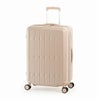 ■ドリンクホルダー付背面に折り畳み式のドリンクホルダーがあります。水筒やペットボトル、折り畳み傘なども収納可能です。両手が空いて移動もラクラクです。■拡張ファスナー機能搭載荷物が増えた場合に便利な拡張ファスナー機能を搭載しました。オープンする事でスーツケースの幅が広がり収納容量がアップ!旅行先で急に荷物が増えても安心です。■荷物フックスーツケースの側面にフック付き台座がありちょっとした荷物が増えても安心です。(18Wはありません。)■キャスターサスペンション搭載なので静音&衝撃吸収し、キャスターが滑らかな安全走行!ダブルホイールキャスターを搭載。通常走行は勿論、段差のある路面で実力を発揮。静音性に優れ、よりスムーズな旋回・走行性を誇ります。■ダイヤル式TSAロックダイヤル式なのでキーを持ち歩く煩わしさがなく、紛失の心配がなくなります。TSAロック搭載で荷物に鍵をかけたまま検査に出すことが可能で、検査はロックを破壊することなく速やかに行われ検査後は施錠して戻してくれるので大切なお荷物を守ることが出来ます。・ボディには高純度ポリカーボネイトを100%使用しています。強度抜群!!軽くて丈夫・拡張式ファスナーで万が一のサイズアップが可能です・便利なドリンクホルダー搭載・サスペンション付きキャスターで点字ブロックや段差もスムーズに走行可能です・YKK社製ファスナー使用-破損や引き裂きが起こりにくい・4~6泊(目安)・66L+10L・3.9kg・内寸H60.0×W42.5×D27.5+4(cm)・外寸H66.5×W45.5×D27.5+4(cm)