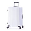 ポリカーボネイト100%ボディだから軽くて丈夫なうえに、拡張機能で大容量!!!さらに、便利な前輪ストッパー機能搭載!!ボディは軽量で破損しにくいポリカーボネイト100%を使用しています。抜群の走行安定性・旋回性を誇る大径50mmダブルホイールキャスターが凹凸のある路面で実力を発揮するうえに、前輪部には簡単に操作可能なストッパー機能を搭載。電車内や坂道などで便利です。さらに、約4.5cmの拡張機能付きで容量100Lから、114Lに拡張します。旅先での急な荷物の増加にも対応します。大容量ながら重さもわずか約4.7kgと軽量です。ファスナーはYKK社製のテープを採用しています。■ボディデザイン ボディは軽量で破損しにくいポリカーボネイト100%を使用しています。ヒビ割れにも強く、発色の良さも特長です。■拡張ファスナー 約4.5cmの拡張機能付き。容量100Lから、114Lに拡張します。旅先での急な荷物の増加にも対応します。■50mm径ダブルホイールキャスター+前輪ストッパー 抜群の走行安定性・旋回性を誇る大径50mmダブルホイールキャスターは凹凸のある路面で実力を発揮します。さらに前輪側には簡単に操作可能なストッパー機能を搭載。揺れる電車内や坂道で便利です。前輪側のキャスターに取り付けているため、本体を斜めに倒せば、ストッパー機能を解除することなく後輪で移動ができます。■YKK社製ファスナー ファスナーは安心のYKK社製のテープを採用しています。■アイテムNo:ALI-6060-28W■サイズ(cm) 外寸 H68.5 × W47.0 × 31.5(+4.5) cm 総外寸 H75.0 × W50.0 × 32.0(+4.5) cm■重さ:約4.7kg■容量:約100(+14) L■旅行日数目安:10泊以上■高純度ポリカーボネイト100% / 拡張機能搭載 / 前輪ストッパー / YKK社製ファスナー※手荷物預け無料最大サイズ