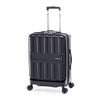 フロントオープン機能を搭載し、荷物の出し入れが素早く行えます。内部の荷物も前から取り出せるダイレクトファスナー仕様で、利便性がよりアップ。抜群の走行安定性・旋回性を誇る大径50mmダブルホイールキャスターが、凹凸のある路面で実力を発揮します。前輪部には簡単に操作可能なストッパー機能を搭載。電車内や坂道などで便利です。高純度ポリカーボネイト100%のボディは軽量かつ頑丈です。耐摩耗性に優れ、壊れにくいYKK社製ファスナーを採用しています。ボディ下部のボトムハンドルは、荷下ろしに便利です。■フロントオープン機能 中の物をサッと取り出したいときに便利なフロントオープン機能。17インチのノートパソコンを収納可能なスペースもあるので、移動中もすぐに端末を取り出すことが可能です。内部の荷物も前から取り出せるダイレクトファスナー仕様です。■50mm径ダブルホイールキャスター+前輪ストッパー 抜群の走行安定性・旋回性を誇る大径50mmダブルホイールキャスターは、凹凸のある路面で実力を発揮します。さらに前輪側には簡単に操作可能なストッパー機能を搭載。揺れる電車内や坂道で便利です。前輪側のキャスターに取り付けているため、本体を斜めに倒せば、ストッパー機能を解除することなく後輪で移動ができます。■ボディデザイン 高純度ポリカーボネイト100%のボディは、軽量かつ頑丈で発色も鮮やかです。■YKK社製ファスナー 優れた耐摩耗性、タフで壊れにくいYKK社製ファスナーを採用しています。■ボトムハンドル ボディ下部に取り付けられているボトムハンドルは、荷降ろしなどの際に便利です。■アイテムNo:ALI-8511-22■サイズ(cm) 外寸 H55.0 × W40.0 × 26.5 cm 総外寸 H62.0 × W43.0 × 26.5 cm■重さ:約3.7kg■容量:約55 L■旅行日数目安:5~7泊■フロントオープン機能 / 前輪ストッパー / 高純度ポリカーボネイト100% / YKK社製ファスナー / ボトムハンドル ※手荷物預け無料サイズです。