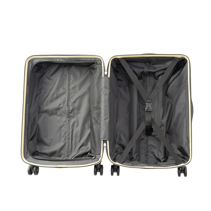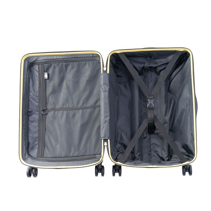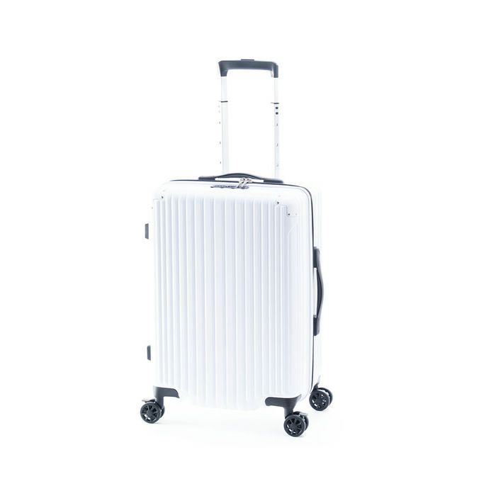 ゆとりのある大容量キャリー!抜群の走行安定性・旋回性を誇る大径50mmダブルホイールキャスターが、凹凸のある路面で実力を発揮するうえに、前輪部には簡単に操作可能なストッパー機能を搭載。電車内や坂道などで便利です。ボディ素材には、新幹線・航空機の窓や防弾ガラスにも採用されている高純度ポリカーボネイトを100%使用しています。ボディ上部4つの角のコーナーパッドが、キズや衝撃からスーツケースを守ります。薄型で耐摩耗性に優れたYKK社製ジッパーを使用。ファスナーの破損を防ぎます。■50mm径ダブルホイールキャスター+前輪ストッパー 大径50mmダブルホイールキャスターは、抜群の走行安定性・旋回性を誇ります。さらに前輪側には簡単に操作可能なストッパー機能を搭載。揺れる電車内や坂道で便利です。■ボディデザイン ボディには高純度ポリカーボネイトを100%使用しています。軽量かつ頑丈で、発色も鮮やかです。■コーナーパッド 上部の4つの角にボディと同色でドレスアップしたコーナーパッドを装備。スーツケースをキズや衝撃から守ります。■YKK社製ジッパー 優れた耐摩耗性、タフで壊れにくいYKK社製ジッパーを採用しています。■アイテムNo:MAXSTOP-22■サイズ(cm) 外寸 H53.0 × W38.0 × 26.0 cm 総外寸 H60.0 × W41.0 × 26.0 cm■重さ:約3.0kg■容量:約50 L■旅行日数目安:5~7泊■前輪ストッパー / 高純度ポリカーボネイト100% / ボディ同色コーナーパッド / YKK社製ジッパー ※手荷物預け無料サイズです。