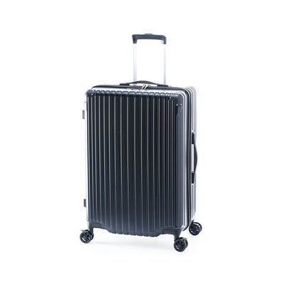 ゆとりのある大容量キャリー!抜群の走行安定性・旋回性を誇る大径50mmダブルホイールキャスターが、凹凸のある路面で実力を発揮するうえに、前輪部には簡単に操作可能なストッパー機能を搭載。電車内や坂道などで便利です。ボディ素材には、新幹線・航空機の窓や防弾ガラスにも採用されている高純度ポリカーボネイトを100%使用しています。ボディ上部4つの角のコーナーパッドが、キズや衝撃からスーツケースを守ります。薄型で耐摩耗性に優れたYKK社製ジッパーを使用。ファスナーの破損を防ぎます。■50mm径ダブルホイールキャスター+前輪ストッパー 大径50mmダブルホイールキャスターは、抜群の走行安定性・旋回性を誇ります。さらに前輪側には簡単に操作可能なストッパー機能を搭載。揺れる電車内や坂道で便利です。■ボディデザイン ボディには高純度ポリカーボネイトを100%使用しています。軽量かつ頑丈で、発色も鮮やかです。■コーナーパッド 上部の4つの角にボディと同色でドレスアップしたコーナーパッドを装備。スーツケースをキズや衝撃から守ります。■YKK社製ジッパー 優れた耐摩耗性、タフで壊れにくいYKK社製ジッパーを採用しています。■アイテムNo:MAXSTOP-24■サイズ(cm) 外寸 H61.5 × W43.0 × 28.0 cm 総外寸 H68.0 × W46.0 × 28.0 cm■重さ:約3.4kg■容量:約70 L■旅行日数目安:5~7泊■前輪ストッパー / 高純度ポリカーボネイト100% / ボディ同色コーナーパッド / YKK社製ジッパー ※手荷物預け無料サイズです。