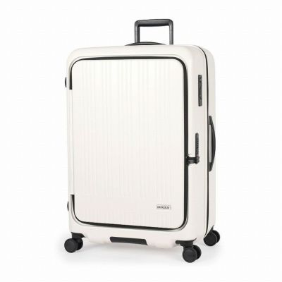 大容量+多機能でスタイリッシュ! 荷物の仕分けに便利な2種類の仕切り付き! 大好評の横開きタイプ!多機能でスタイリッシュ!荷物の出し入れのしやすさで大好評の横開きタイプ!仕分けに便利な2種類の仕切り付きです。揺れる電車や坂道で便利なストッパー機能を搭載、そのうえ、前輪だけが止まるので、トローリーハンドルを引いて本体を斜めに倒せばストッパーを解除することなく移動ができます。静音性に優れた新素材採用のLisof Silent Runを搭載。抜群の安定性と走行性を誇ります。ボディ素材には、新幹線・航空機の窓や防弾ガラスにも採用されている高純度ポリカーボネイトを100%使用しています。内装生地は抗菌防臭加工で快適・安心。優れた耐摩耗性、タフで壊れにくいYKK社製ファスナーを採用。ボトムハンドルは、荷降ろしなどに便利です。■横開きタイプ トレンドの横開きタイプ。大容量を誇ります。■2種類の仕切り 荷物の仕分けに便利な2種類の仕切りは、収納可能な仕切り、取り外し可能な仕切りをそれぞれ1枚ずつご用意しています。■前輪ストッパー機能 揺れる電車内や坂道で便利なストッパー機能を搭載。ワンタッチで on / off 操作ができます。操作ボタンはボディの側面側、上部に取り付けているので、しゃがむ必要もありません。そのうえ、ストッパー機能を前輪側のキャスターに取り付けているので、本体を斜めに倒せば、ストッパー機能を解除することなく後輪で移動ができます。■HINOMOTO 50mm径静音ダブルホイールキャスター”Lisof Silent Run” 日乃本錠前と三菱ケミカルが共同開発した、静音性に優れた新素材の”Lisof Silent Run”を搭載しているので、快適な走行性を誇ります。■ポリカーボネート100%素材 ボディ素材には、新幹線・航空機の窓や防弾ガラスにも採用されている高純度なポリカーボネイトを100%使用しています。■拡張機能 荷物が増えた際に便利な拡張機能付き。拡張ファスナーを広げてご利用ください。※拡張機能使用時には規定を超える場合がございます。予めご了承ください。■抗菌防臭加工 内装生地は抗菌・防臭加工が施されているので、衛生的で快適・安心!SEKマークは繊維評価技術協議会の定めた高い基準を満たした製品のみに使用可能な安心の証です。■YKK社製ファスナー 優れた耐摩耗性、タフで壊れにくいYKK社製ファスナーを採用しています。■ボトムハンドル ボディ下部に取り付けられているボトムハンドルは、荷降ろしなどの際に便利です。■アイテムNo:MX-8011-28W■サイズ(cm) 外寸 H69.5 × W48.0 × 31.5(拡張+3) cm 総外寸 H74.0 × W51.0 × 32.0(拡張+3) cm■重さ:約4.9kg■容量:約100(拡張+10)L■旅行日数目安:10泊以上■ワンタッチ 前輪ストッパー機能 / 高純度ポリカーボネイト100% / 拡張機能 / SEK基準・抗菌内装生地 / HINOMOTO 静音ダブルホイールキャスター”Lisof Silent Run” / YKK社製ファスナー / ボトムハンドル※手荷物預け無料サイズ最大サイズ。拡張機能使用時には規定を超える場合がございます。予めご了承ください。