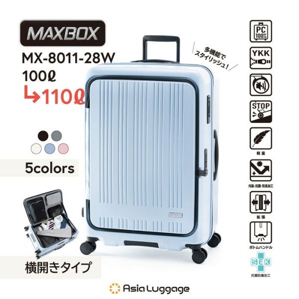 他の画像を見る 送料無料・代引き手数料無料 A.L.I ハードキャリーケース MAXBOX 10泊以上 100L~110L MX-8011-28W-MPBL マットペールブルー 当店特別価格 ¥ 41,800 税込 送料無料・代引き手数料無料 カートに入れる お気に入りに登録する