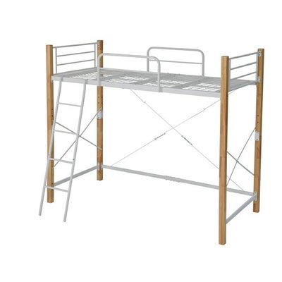 ■温かみのある天然木とクールなスチールのコントラストがおしゃれな、お部屋のスペースを有効活用できるロフトベッド。