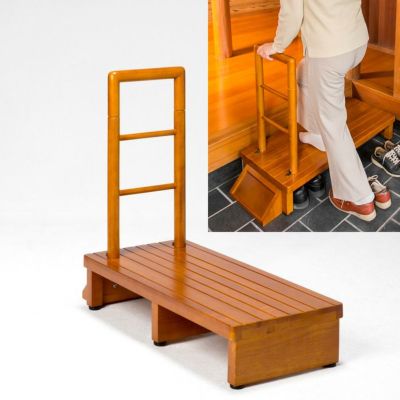 ■玄関の段差を減らして上り下りがラクになる手すり付き玄関台。1段追加されるので高い玄関の上り下りがラクになります。また、手すりも付いているので安心。台の横には横倒れ防止の支えが付いています。■台の下には靴を収納できるスペースがあるので、設置しても靴の置き場所に困りません。■向きを変えて設置できるので左右どちらでもOK。■本体サイズ:(約)幅1000×奥400×高780mm 約11kg■踏み台サイズ:(約)幅900×奥400×高175mm■台下スペース(アジャスター込):(約)幅380×奥380×高135mm×2●材質:ラバーウッド、PP樹脂、スチール●耐荷重:約100kg●組立式●ベトナム製