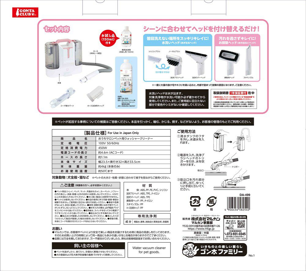 他の画像を見る 送料無料 マルカン おうちサロン グルーミングクリーナー GONTA CLUB DA-414 犬猫用品 当店特別価格 ¥ 19,800 税込 送料無料 カートに入れる お気に入りに登録する