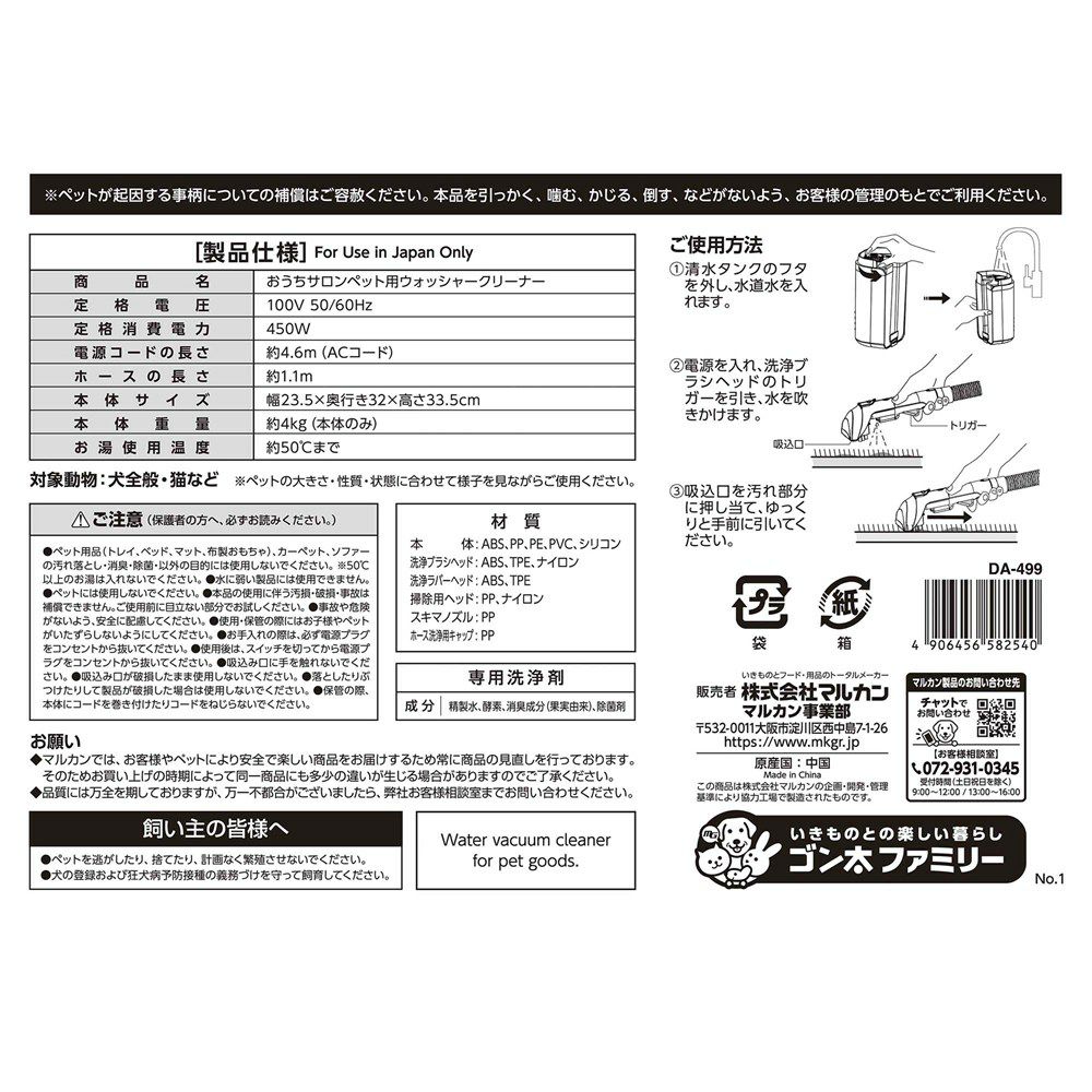 他の画像を見る 送料無料 マルカン おうちサロン ペット用 ウォッシャーハンディークリーナー DA-526 犬猫用品 当店特別価格 ¥ 18,800 税込 送料無料 カートに入れる お気に入りに登録する