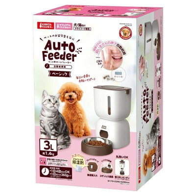 ■給餌量、給餌時間をらくらく設定できる、ドライフード専用自動給餌器です。■決められた時間に決められた量を与えることで肥満など毎日の食事を手軽にサポートできます。■操作も簡単。設定内容がわかりやすい表示画面■録音された飼い主さんの声で自動給餌■アダプター式と電池式の2種類から給電方法が選べる2WAY式で、停電など緊急時でも電池から給電できるので安心です。■電池残量が少なくなると操作パネルの乾電池イラストとSTATEランプでお知らせします。■フードタンク、羽根車、食器をそれぞれ取り外して丸洗いできます。■食器はサビに強く耐久性に優れたステンレス食器■ドライフードの除湿剤のおまけ付き!■材質:本体/ABS、食器/ステンレス■本体サイズ:W170×D295×H290mm■本体重量:0.9kg■電源コード長:約1.5m■容量:3L(約1.4kg) ■適応種:小型犬・猫■定格電圧:DC5V■電源方式:USB電源アダプター5V/1A~2.1A(別売)または単一アルカリ電池×3本(別売)■定格消費電力:作動時約0.5W 待機時約0.13W■セット内容:本体・食器・USBコード・除湿剤サンプル■原産国または製造地:中国