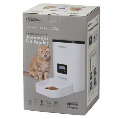 ■簡単操作で「ごはん時間」をサポートする自動給餌&フードストッカーです。旅行や外出時、健康管理、帰宅が遅くなる時などにお使いいただけます。■いつも食べてる「ごはん時間」に簡単設定■最適なごはん量に細かく設定できます。■カチッと密閉できるので、湿度やホコリなどの侵入を防止。■録音機能で、飼い主さんの声で「ごはんだよ!」の合図■停電時も安心。乾電池&USBコードの2電源式。■食器は水洗いOK。ピカピカのお皿でおいしいごはん。■タンク容量約1kg!フードストックに。■材質:ABS樹脂、合成ゴム■設置サイズ:巾18×高さ28×奥行33cm■USBコード長:1.5m■仕様:電源方式:乾電池またはUSBコード式(USBアダプター:出力DC5V 1A以上/乾電池:単1形アルカリ乾電池×3本)■適合するフードのサイズ:直径2~12mm、厚み12mm以下のドライフードのみ■セット内容:給餌器本体、食器、USBコード(※USBアダプター、乾電池は付属していません。)