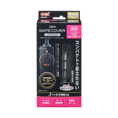■魚を熱から守る安全カバー付ヒーターとコンパクトサーモスタットの一体型新構造オートヒーター!水温を15~32度にコントロールできるサーモスタットと80Wヒーターの一体型温度可変式ヒーターです。.