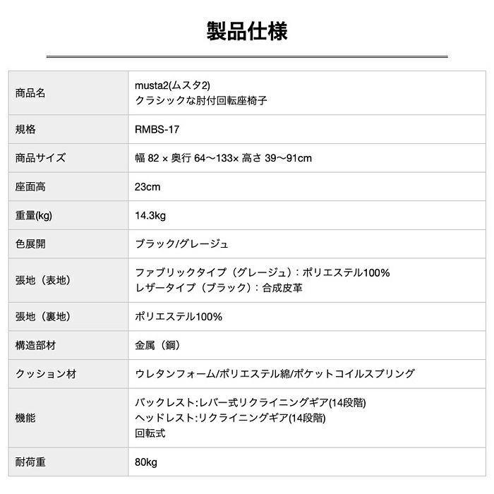 他の画像を見る 送料無料 SUWALABO スワラボ クラシックな肘付回転座椅子 musta2 ムスタ2 RMBS-17-BK ブラック 当店特別価格 ¥ 19,990 税込 送料無料 カートに入れる お気に入りに登録する