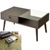■半分がキレイなガラス天板+お気に入りの雑貨を魅せる収納スペース、もう半分は木製天板+引き出しとなっております。