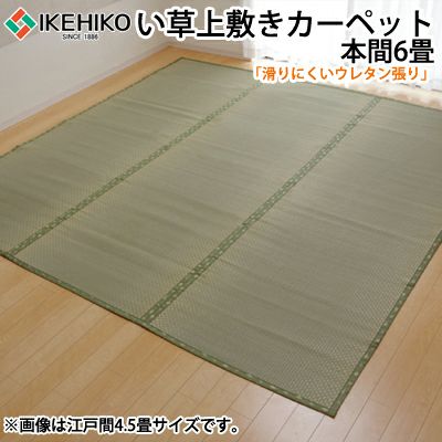 ■上敷きを敷くだけで畳のお部屋をリフレッシュ出来ます。■日焼けしてしまった畳のリフレッシュに、新品の畳を汚さないためのカバーにご使用下さい。■お部屋の形に合わせて簡単にカットできる、フリーカットタイプです。■裏にはウレタンを貼っていますので適度なクッション性があります。■長さ110~115cmの国産(九州産)い草を使用しています。そのうち約95cmを使用しています。■ヘリ際はある程度白みを帯びます。(白い部分は日焼けではありません、い草の根元と先端部分の色です。)■い草は長いものほど高級になります。■い草は先端部分が赤茶色く、根元が白く真中が青(緑)色です。■真中の良質な青の部分を多く使用するほど、丈夫で綺麗な仕上がりとなります。またイ草は使用するうちに日焼けをしますが、真中の青の部分を多く使用したものほど、全体が綺麗にムラなく日焼けし、味が出ます。■国産(九州産)のい草を使用しています。■国産い草は一本一本が太く、表皮が厚く繊維がキメ細かいので弾力性があり、耐久性に優れています。■い草には空気の清浄化作用、湿度の調節作用があり、汚れにくいといった特徴があります。■い草に青森ヒバ加工を施しています。(抗菌、防臭効果)■素材:い草(熊本県八代産) ※市松織 ヘリ=ポリプロピレン、ポリエチレン 裏地=ウレタンフォーム3mm 補修縁4m付 日本製(純国産)