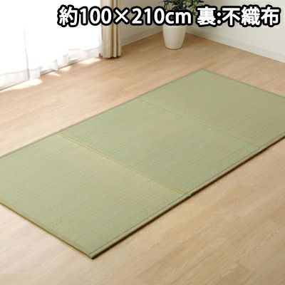 ■マットレス シングル 三つ折り い草 置き畳 国産 『い草マットレス』 約100×210cm (裏:不織布)■マットレスとして使用できるユニット畳です。■布団の下に敷いても使用していただけるように、布団のサイズに合わせました。■布団を上げれば、簡易的な和室やお子様が遊べるスペースとしてもご使用いただけます。■い草には空気の自然浄化作用、湿度の調節作用などがあります。布団の下の湿度を調湿してくれます。※自然素材につきい草部分の商品仕様が異なる場合があります。■素材:表地=い草 裏地=ポリエステル100%(不織布)10mm